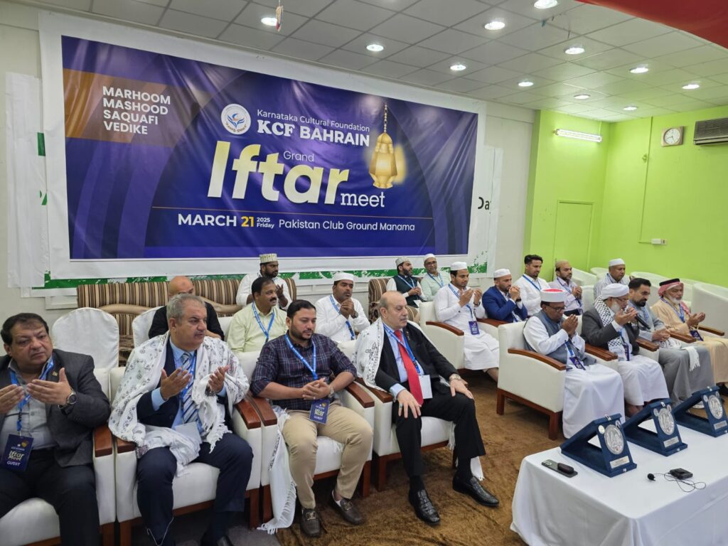 ಕೆಸಿಎಫ್ ಬಹರೈನ್ ಹಮ್ಮಿಕೊಂಡ ಬೃಹತ್ ಇಫ್ತಾರ್ ಸಂಗಮವು ದಿನಾಂಕ 21-03-2025 ರಂದು ಮನಾಮ ಮೈದಾನದಲ್ಲಿ ನಡೆಯಿತು. ಅಸ್ಸಯ್ಯಿದ್ ಅಲೀ ಬಾಫಕೀ ತಂಙಳ್ ರವರ ದುಆದೊಂದಿಗೆ ಪ್ರಾರಂಭಗೊಂಡ ಕಾರ್ಯಕ್ರಮದ ಸಭಾಧ್ಯಕ್ಷತೆಯನ್ನು ರಾಷ್ಟ್ರೀಯ ಸಮಿತಿ ಅಧ್ಯಕ್ಷರಾದ ವಿಟ್ಟಲ್ ಜಮಾಲುದ್ದೀನ್ ಅವರು ವಹಿಸಿದರು. ರಾಷ್ಟ್ರೀಯ ಸಮಿತಿ ಪ್ರಧಾನ ಕಾರ್ಯದರ್ಶಿ ಹಾರಿಸ್ ಸಂಪ್ಯ ಸ್ವಾಗತ ಮಾಡಿದ ಕಾರ್ಯಕ್ರಮದಲ್ಲಿ ಅಸ್ಸಯ್ಯಿದ್ ಅಬ್ದುರ್ರಹ್ಮಾನ್ ಆಟಿರಿ ತಂಙಳ್ ರವರು ಮುಖ್ಯ ಪ್ರಭಾಷಣ ಮಾಡಿ ಪವಿತ್ರ ರಂಝಾನ್ ಪಾಪ ವಿಮೋಚನೆಯ ಮಾಸವಾಗಿದ್ದು ಅಲ್ಲಾಹನೊಂದಿಗೆ ಪಶ್ಚಾತ್ತಾಪ ಪಟ್ಟು ನಾವು ತೌಬಾ ಮಾಡಬೇಕಾಗಿದೆ. ಅಲ್ಲಾಹನು ಅತ್ಯಂತ ಕ್ಷಮಾಶೀಲನಾಗಿದ್ದು ಅವನ ಕ್ಷಮೆಯನ್ನು ಪಡೆದರೆ ಮಾತ್ರ ನಾವು ಪರಲೋಕ ವಿಜಯಿಯಾಗಲು ಸಾಧ್ಯ ಎಂದು ಕರೆ ನೀಡಿದರು.