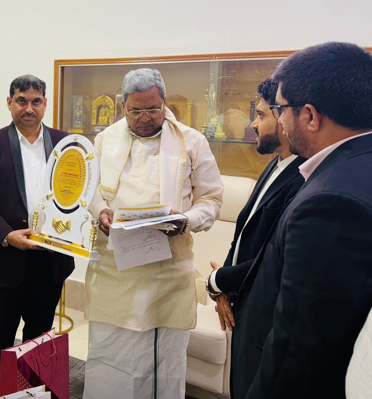 ಬೆಂಗಳೂರು: ಕರ್ನಾಟಕ ಕಲ್ಬರಲ್ ಫೌಂಡೇಶನ್ (KCF) ಅಂತಾರಾಷ್ಟ್ರೀಯ ಸಮಿತಿಯ ಉನ್ನತ ಮಟ್ಟದ ಪ್ರತಿನಿಧಿ ತಂಡವು ಜು.22 ರಂದು ಸನ್ಮಾನ್ಯ ಮುಖ್ಯಮಂತ್ರಿ ಶ್ರೀ ಸಿದ್ದರಾಮಯ್ಯ ಅವರನ್ನು ಬೆಂಗಳೂರಿನ ಅಧಿಕೃತ ನಿವಾಸದಲ್ಲಿ ಭೇಟಿಯಾಗಿ ಅನಿವಾಸಿ ಕನ್ನಡಿಗರ (NRKs) ಸಮಸ್ಯೆಗಳ ಕುರಿತು ಗಂಭೀರ ಚರ್ಚೆ ನಡೆಸಿ, ಮನವಿಯನ್ನು ಸಲ್ಲಿಸಿತು.