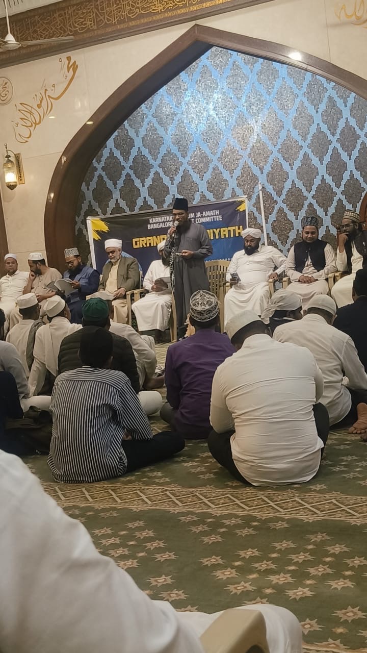 ಕರ್ನಾಟಕ ಮುಸ್ಲಿಂ ಜಮಾತ್ ಬೆಂಗಳೂರು ಜಿಲ್ಲಾ ಸಮಿತಿ ಖಾದ್ರಿಯ ಮಸೀದಿಯಲ್ಲಿ ಹಮ್ಮಿಕೊಂಡ ಕುತುಬಿಯತ್ ಕಾರ್ಯಕ್ರಮದಲ್ಲಿ ಮುಸ್ಲಿಂ ಜಮಾತ್ ರಾಜ್ಯ ನಾಯಕರಾದ ಮೌಲಾನಾ ಶಬೀರ್ ಅಹ್ಮದ್ ರಜ್ವಿ, ಮೌಲಾನಾ ಶಾಫಿ ಸಾದಿ,