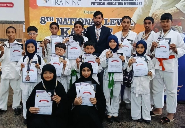 ಆಯೋಜಿಸಿದ, 8ನೇ ರಾಷ್ಟ್ರಮಟ್ಟದ ಮುಕ್ತ ಕರಾಟೆ ಚಾಂಪಿಯನ್ಶಿಪ್ -2025 Yes ಸರ್-ಹಿಂದ್ ಆಂಗ್ಲ ಮಾಧ್ಯಮ ಸ್ಕೂಲ್ ಬಂಗ್ಲಗುಡ್ಡೆ ಕಾರ್ಕಳ ದ ವಿದ್ಯಾರ್ಥಿಗಳಾದ