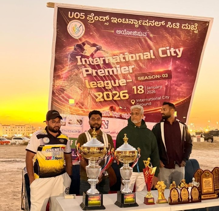 ದುಬೈ : U05 ಫ್ರೆಂಡ್ಸ್ ದುಬೈ ಆಯೋಜಿಸಿದ ಇಂಟರ್ನ್ಯಾಷನಲ್ ಸಿಟಿ ಪ್ರೀಮಿಯರ್ ಲೀಗ್ – 2026 ಸೀಸನ್ 3 ಪಂದ್ಯಾಟ ಬಹಳ ಅದ್ದೂರಿಯಾಗಿ ದುಬೈ ಇಂಟರ್ನ್ಯಾಷನಲ್ ಸಿಟಿ ಮೈದಾನದಲ್ಲಿ ನಡೆಯಿತು.