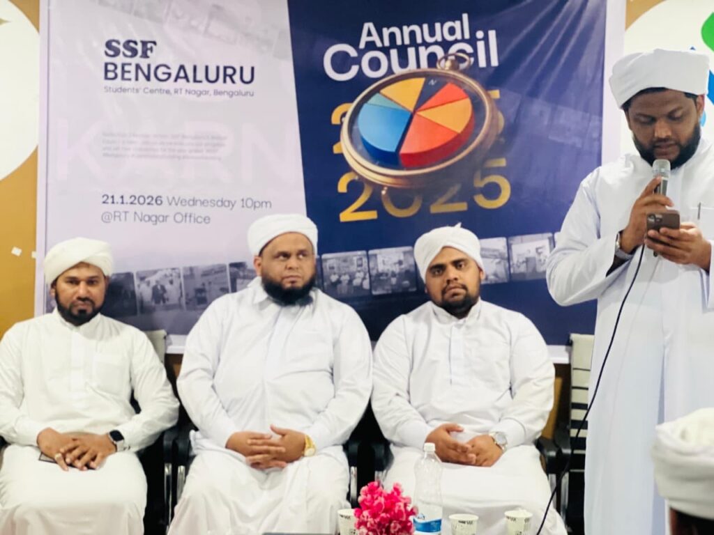 ಬೆಂಗಳೂರು: ಕರ್ನಾಟಕ ರಾಜ್ಯ ಸುನ್ನಿ ಸ್ಟೂಡೆಂಟ್ಸ್ ಫೆಡರೇಷನ್ (SSF) ಬೆಂಗಳೂರು ಜಿಲ್ಲೆ ಇದರ ವಾರ್ಷಿಕ ಮಹಾಸಭೆಯು SSF ಜಿಲ್ಲಾ ಕಛೇರಿ ಆರ್ ಟಿ ನಗರದಲ್ಲಿ ಜಿಲ್ಲಾ ಅಧ್ಯಕ್ಷರಾದ ಫಾರೂಕ್ ಅಮಾನಿ ಉಸ್ತಾದರ ಅಧ್ಯಕ್ಷತೆಯಲ್ಲಿ ನಡೆಯಿತು.