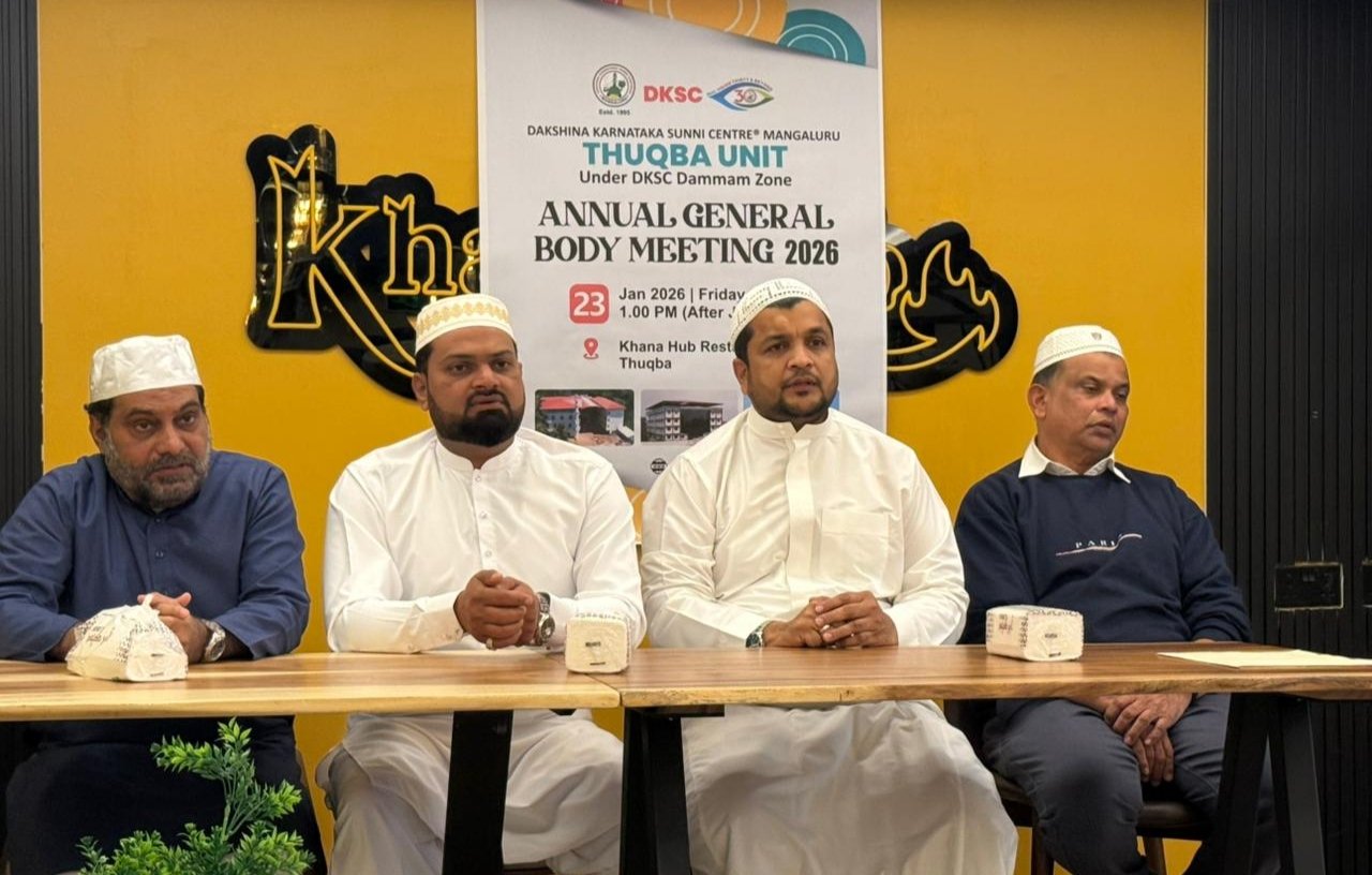ದಕ್ಷಿಣ ಕರ್ನಾಟಕ ಸುನ್ನಿ ಸೆಂಟರ್ (ರಿ) ಮಂಗಳೂರು ದಮ್ಮಾಂ ವಲಯ ಅಧೀನದ ತುಖ್ಬ ಘಟಕದ 31ನೇ ವಾರ್ಷಿಕ ಮಹಾಸಭೆ 23, ಜನವರಿ 2026 ಶುಕ್ರವಾರ ಜುಮ್ಅ ನಮಾಝಿನ ಬಳಿಕ ತುಖ್ಬಾದಲ್ಲಿ ಡಿಕೆಯಸ್ಸಿ ತುಖ್ಬ ಘಟಕದ ಅಧ್ಯಕ್ಷ ಜನಾಬ್ ಅಬೂಬಕ್ಕರ್ ಹಂಡೇಲ್ ಮುಹಮ್ಮದ್ ರವರ ಘನ ಅಧ್ಯಕ್ಷತೆಯಲ್ಲಿ ಜರಗಿತು.