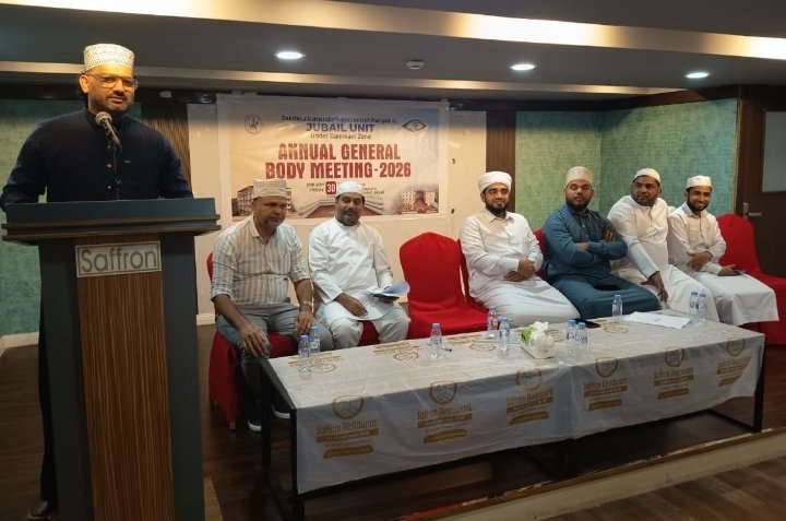 ದಕ್ಷಿಣ ಕರ್ನಾಟಕ ಸುನ್ನಿ ಸೆಂಟರ್ (ರಿ) ಮಂಗಳೂರು ದಮ್ಮಾಂ ವಲಯ ಅಧೀನದ ಜುಬೈಲ್ ಘಟಕದ ಮಹಾಸಭೆಯು ದಿನಾಂಕ 30, ಜನವರಿ 2026 ಶುಕ್ರವಾರ ಅಧ್ಯಕ್ಷರಾದ ಮುಹಮ್ಮದ್ ಅಲಿ ಕೃಷ್ಣಾಪುರ ಅವರ ಅಧ್ಯಕ್ಷತೆಯಲ್ಲಿ ಜುಬೈಲ್ ನಲ್ಲಿ ಜರಗಿತು.